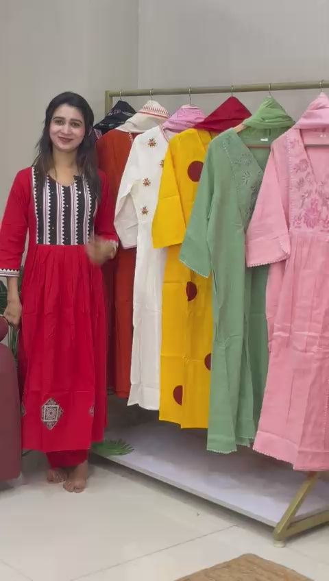 Cotton Short Tunic Kurtis with Embroidered Work Red