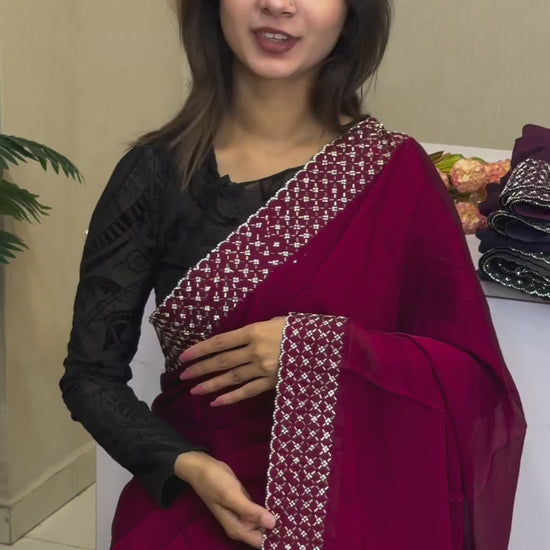 Designer Georgette Saree with Embroidered Multicolor Blouse