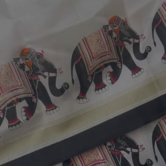 Mysore Khadi Silk Saree with HD Ikkat Style Print & Tassels (Elephant Design)