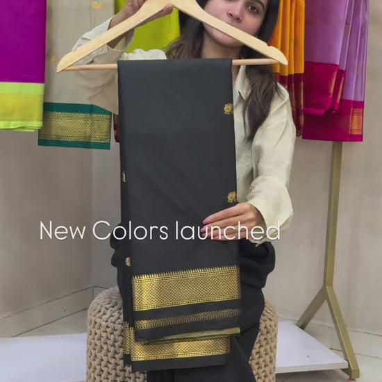 AK-414 BLACK POLKI – Elegant Semi Soft Silk Zari Woven Saree