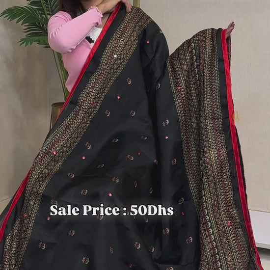 AK-266 – Banarasi Sartin Pattu Soft Silk Saree - Black