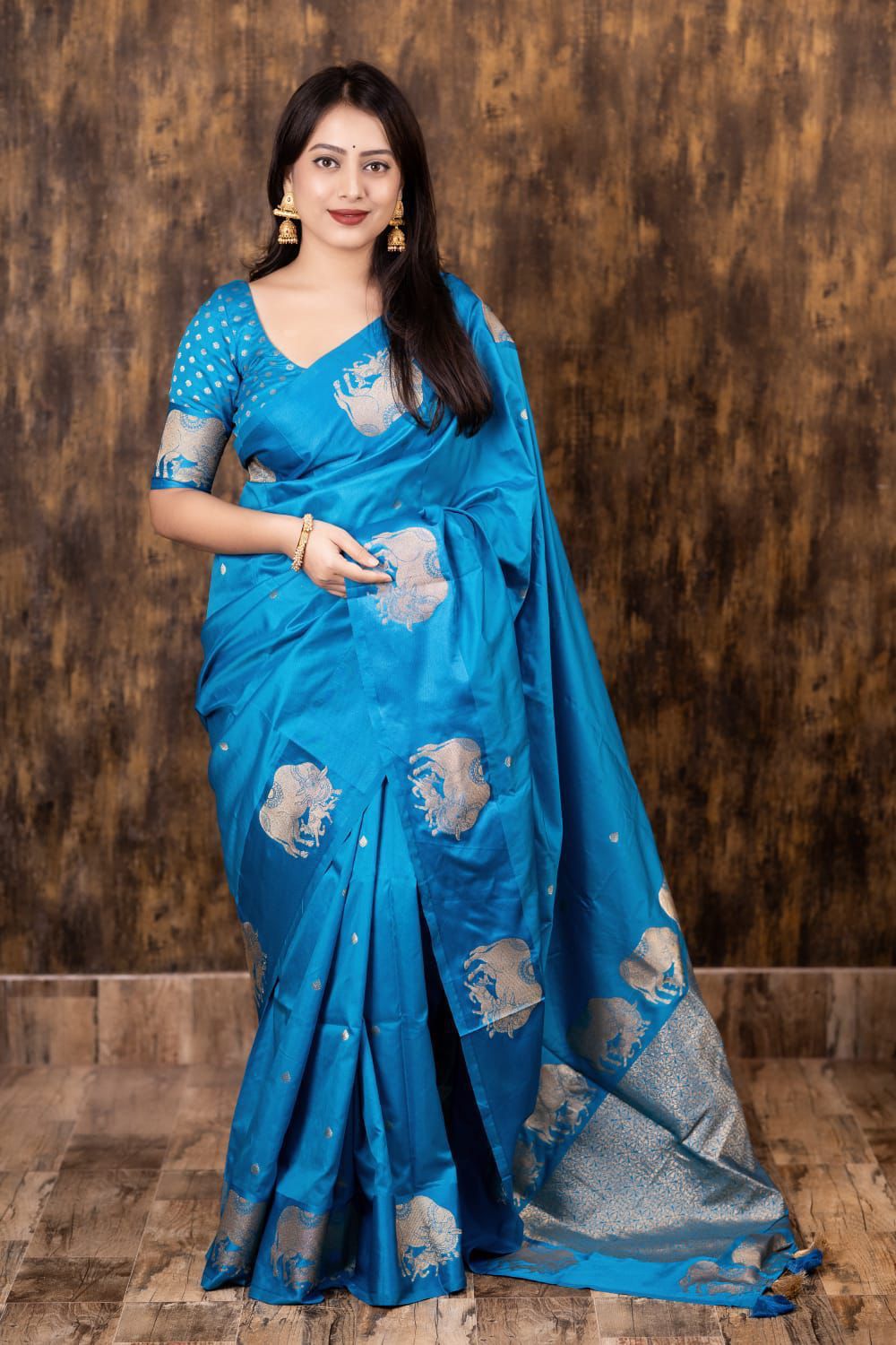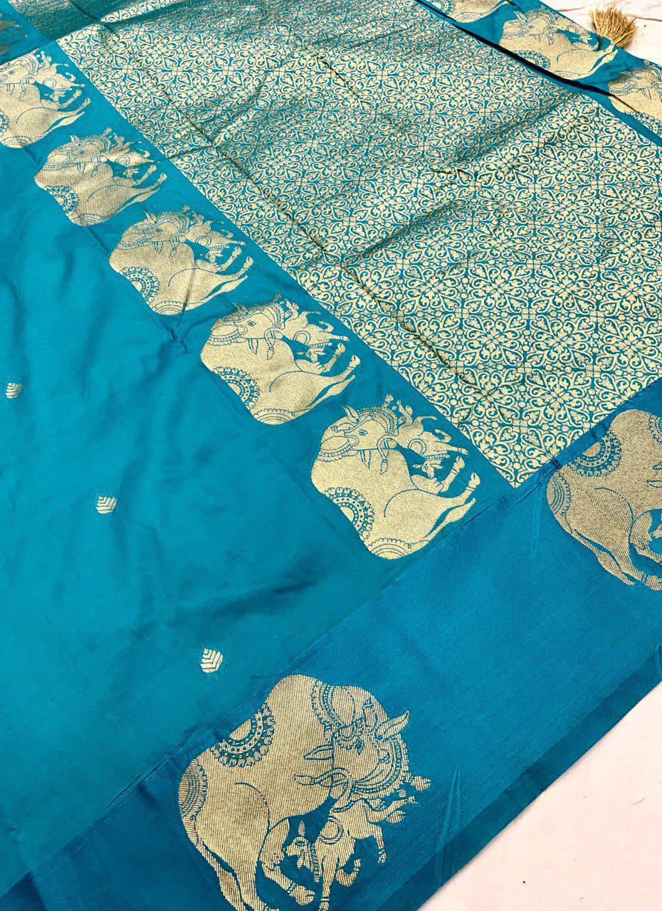 AK-266 – Banarasi Sartin Pattu Soft Silk Saree - Blue