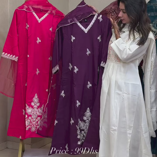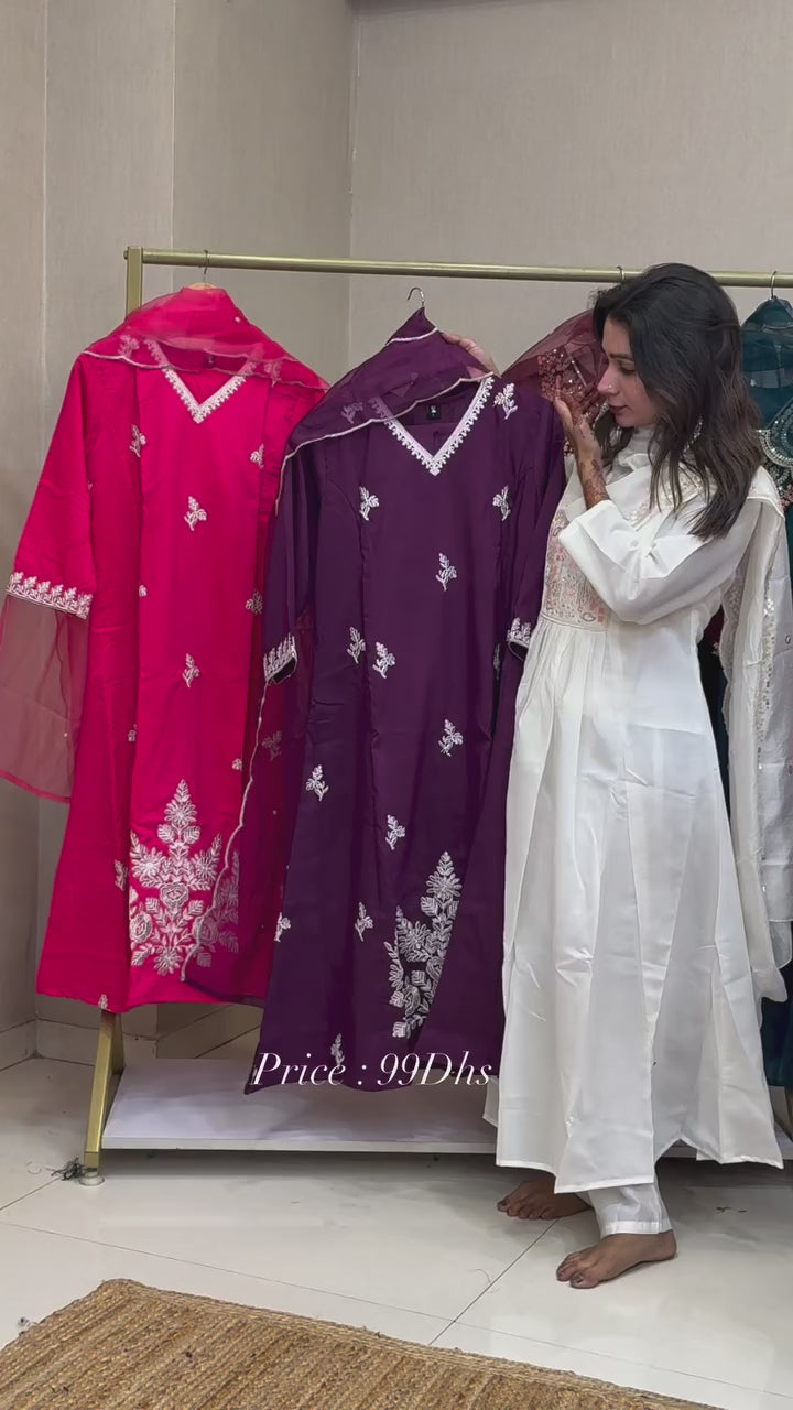 Georgette Chikenari Embroidered Readymade Three Piece Suits