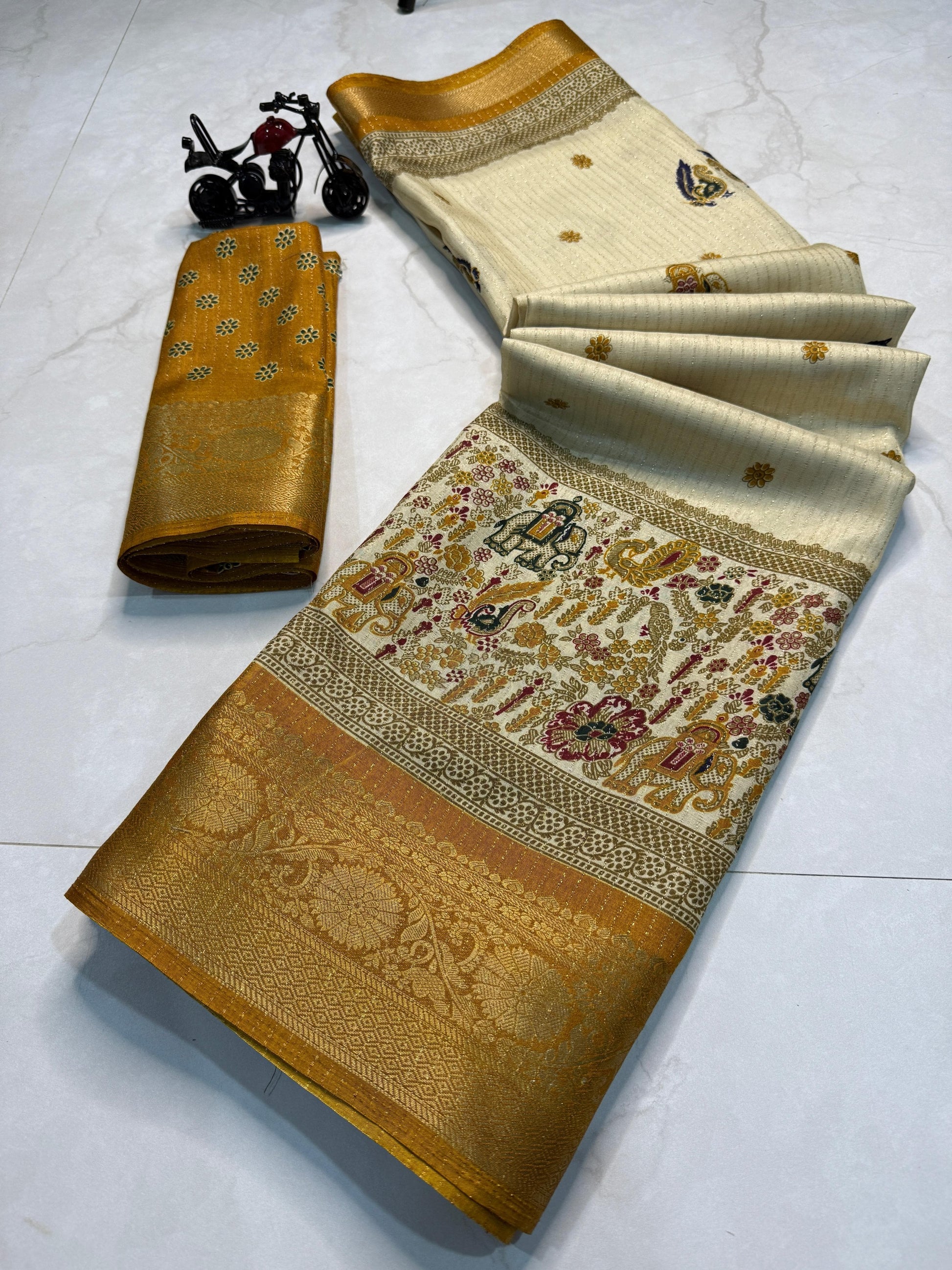 KESARIYA Collection – South’s Signature Weave in a Festive Lehenga Set - CREAM