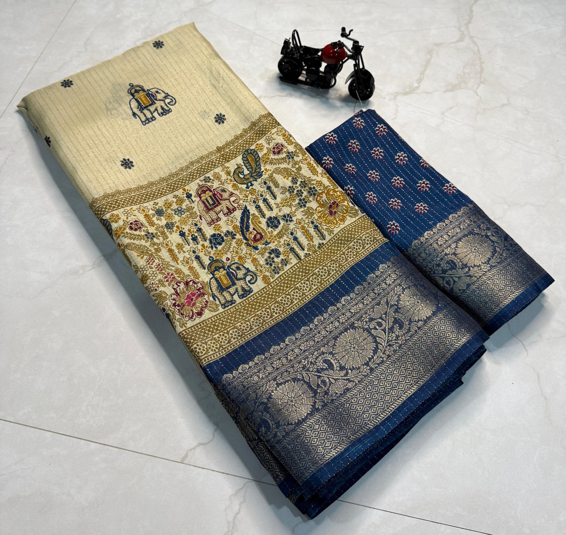 Add a touch of everyday charm to your wardrobe with the Rekko Silk Saree, crafted from soft premium fabric and adorned with vibrant all-over floral prints. The stunning contrast woven border and rich woven pallu enhance its elegance, making it perfect for casual outings, small functions, and gifting across the UAE.