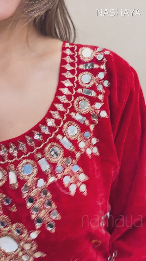 Where โPassion for Fashionโ meets regal charm โ this velvet real mirror work suit set is designed for festive evenings, wedding functions, and elegant ethnic occasions. Crafted from rich velvet fabric and adorned with traditional real mirror handwork, this ensemble delivers a luxurious look with effortless comfort. A graceful dupatta completes the set, making it a perfect statement outfit for celebrations across the UAE.